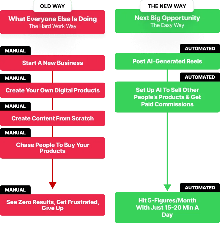 This works because you can use any instagram account, use A.I. to generate reels and sell other people's products for you, while you get commissions for it.