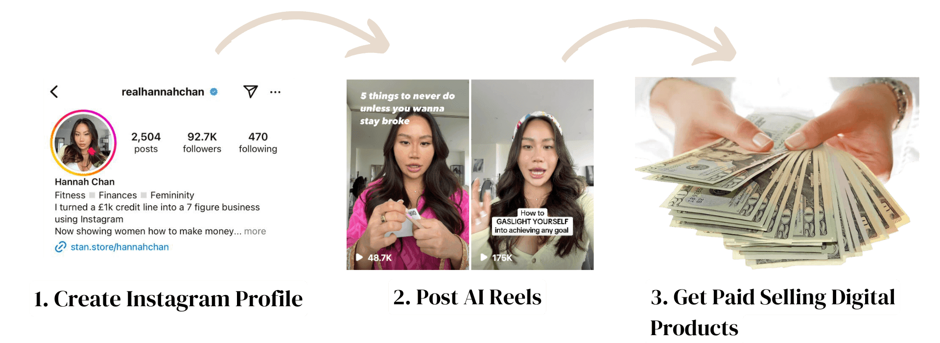And the only reason this is possible because this system shows you how to take other people's digital products and sell them using A.I. generated reels.